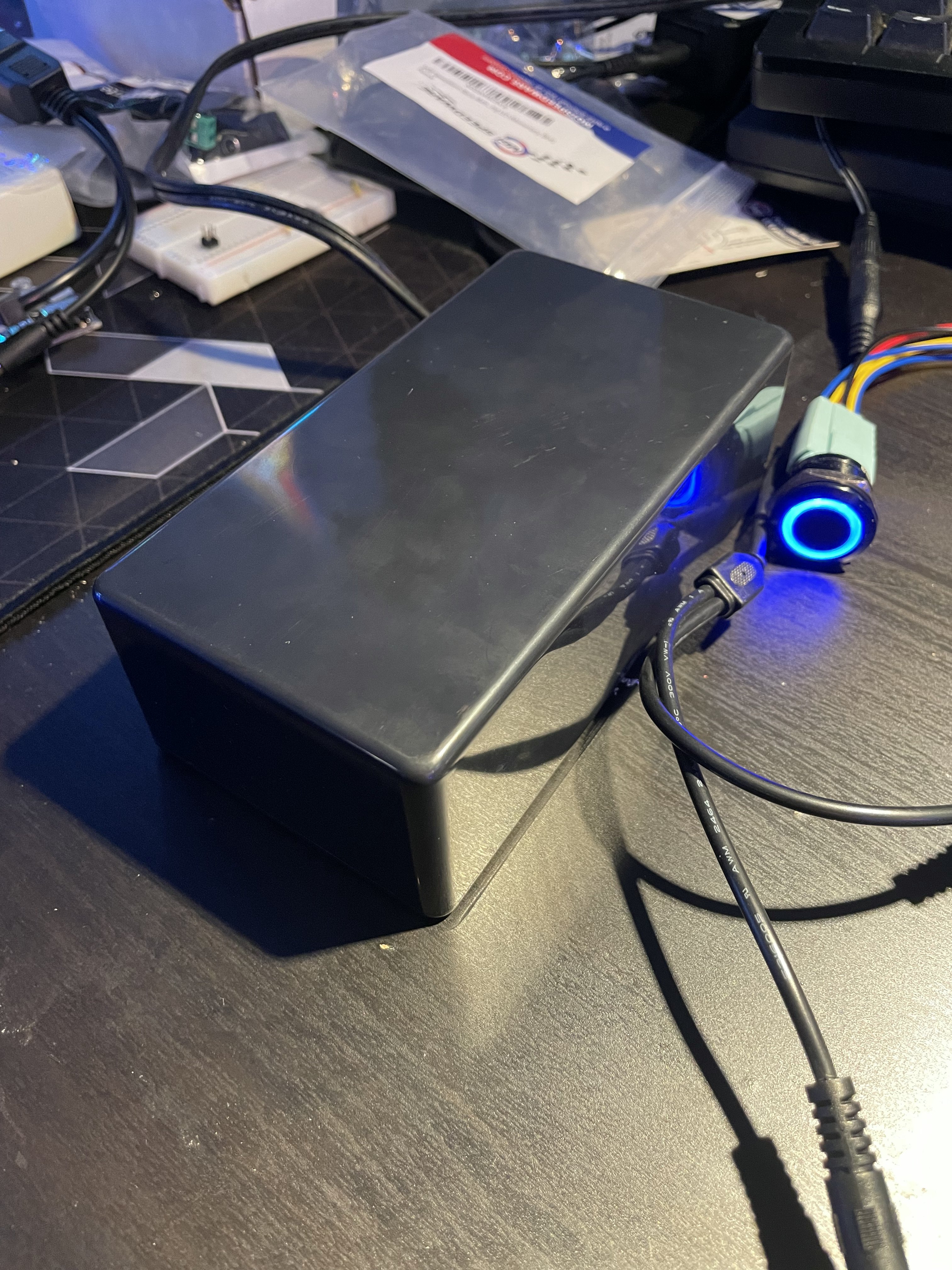 For the hardware, the first thing that comes to mind is obviously the button. I decided to buy a cool “engine starter” automotive button 1 first, and design the rest of the doorbell around that. The LED around button is powered via 12vDC as well, so if I wanted to be able to control it via software, I’ll also need to get a MOSFET and build a small circuit.