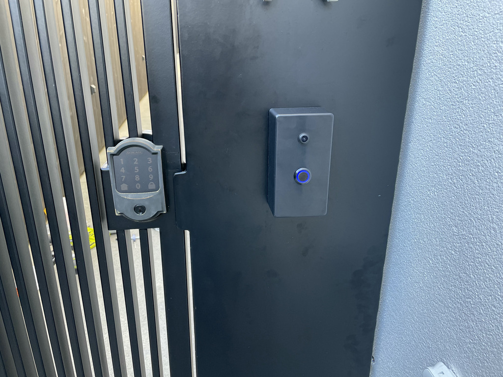 Above is the final product, drilled, screwed, and installed onto the gate in front of my house. The LED ring is not really that noticeable during the daytime, but trust me, it’s very bright at night! It does a cool pulsing effect when idle, and blinks when pressed to acknowledge the press and to notify the visitor that someone is coming.